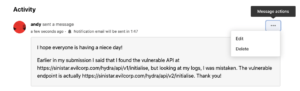 Want to pass a note along to Bugcrowd, but don’t necessarily want everyone seeing it? Have you ever submitted a comment that you wanted to call back immediately? Do you obsess over the content of your comments only to realize – too late – that you made a glaring typo that you can’t edit now?