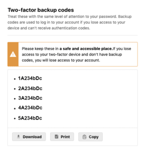 When you enable 2FA on your profile, the platform now generates several backup codes to help you reset your account without assistance from the Bugcrowd team! These codes are only generated once, so make sure you keep them in a safe place! If you lose or are unable to access your authentication device, you’ll enter the saved backup codes to disable 2FA from your account.