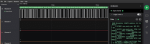 Another important setting to identify from the results of the logic analyzer is the baud rate. The baud rate describes the speed of the bus. There are a lot of common baud rates, such as 9600, 57600, or 115200. All of them are used. Luckily, modern logic analyzers have a feature for easily identifying the baud rate so you don’t have to. Simply add an “Async Serial Analyzer” to one of the data channels on your logic analyzer and vary the bit rate setting. If you selected the right one, the logic analyzer software should start to reveal the correct representation of the signal. If this happens, you have found the correct baud rate.