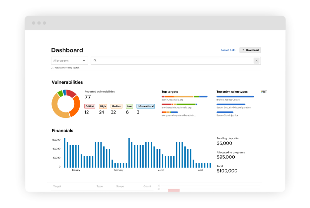 The Bugcrowd Platform validates, triages, and prioritizes submissions rapidly, ensuring the direst issues get immediate attention. You always have full visibility into findings through the platform.