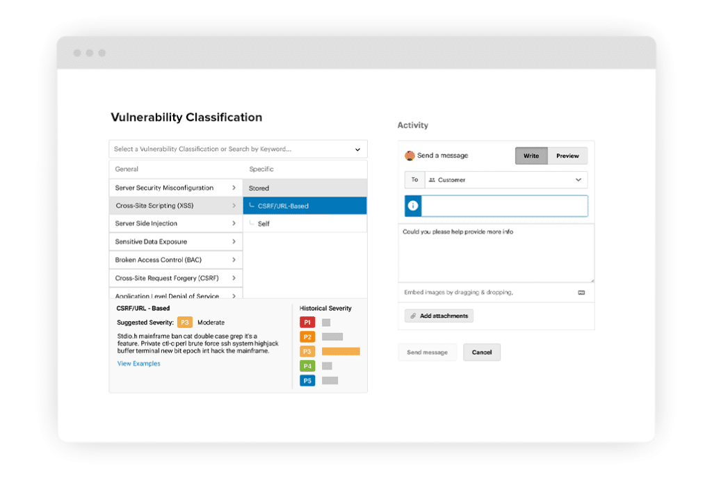 Built-in security workflows streamline program on-boarding, promote customer and researcher communication, and expedite vulnerability triage, validation, and remediation activities