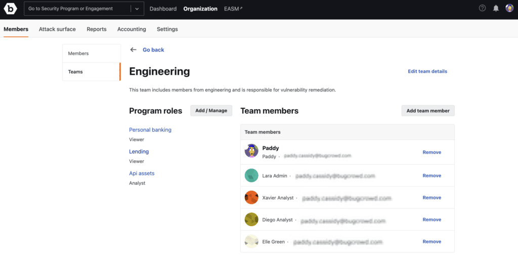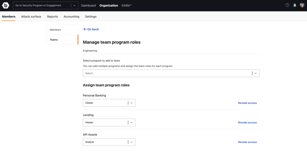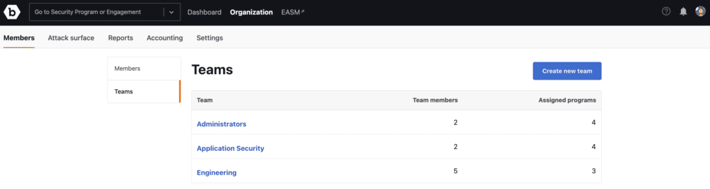 This feature introduces a team-based approach to people resource management, making it easier for Organization Owners and Program Administrators to assign roles and manage access efficiently while maintaining security. Like Security Program Management, Customer Teams is another milestone in the broader initiative to enhance at-scale resource management at Bugcrowd.