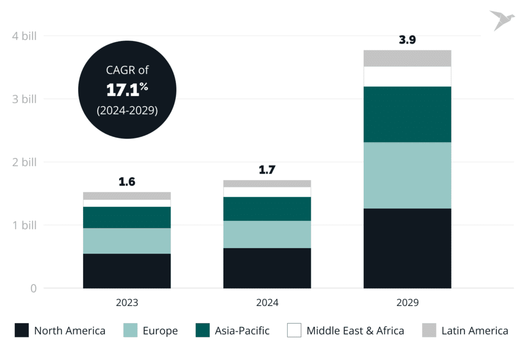 Market research shows the growing demand of penetration testing. In 2024, the global penetration testing market was worth $1.7 billion. Experts claim it will reach $3.9 billion by 2029 (with a CAGR of 17.1%).