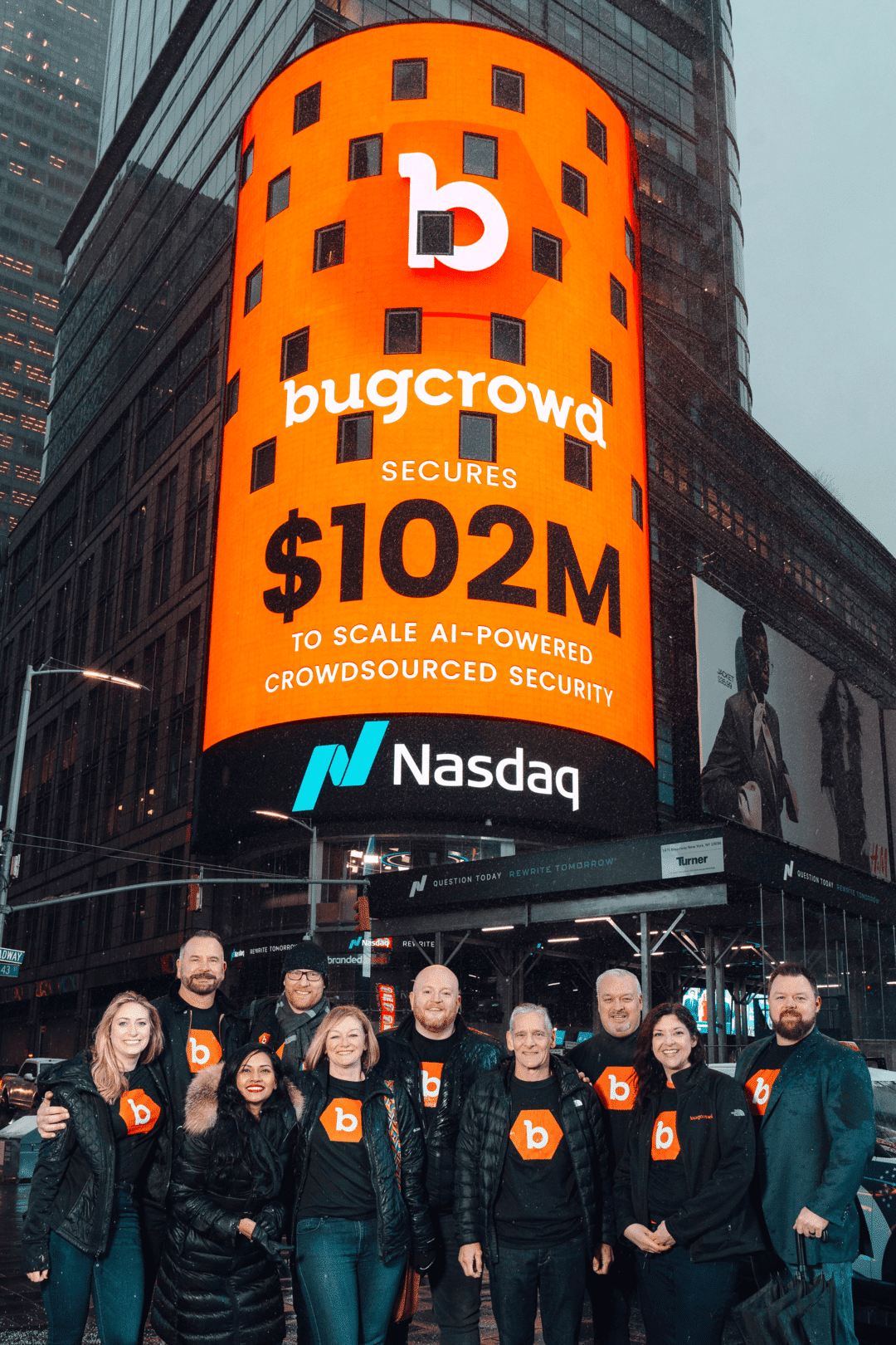 The next day, the team gathered in the snow and rain in the center of the buzz of New York City—Times Square. As Bugcrowd’s funding announcement and logo shined on the massive Nasdaq tower, we were all in awe. I had the biggest smile on my face and just kept thinking, “wow, this is actually happening.”