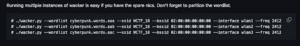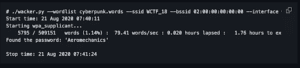 ./wacker.py --wordlist cyberpunk.words --ssid WCTF_18 --bssid 02:00:00:00:00:00 --interface wlan2 --freq 2412